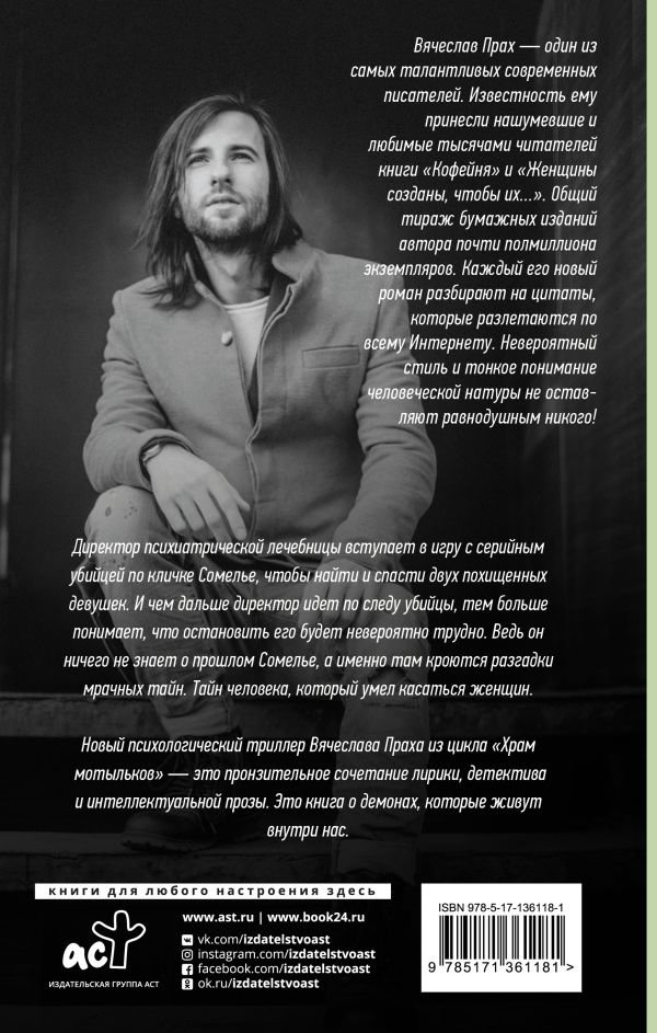 Новый психологический триллер Вячеслава Праха из цикла "Храм мотыльков" — это пронзительное сочетание лирики, детектива и интеллектуальной прозы. Это книга о демонах, которые живут внутри нас.