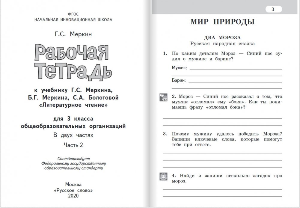 Рабочая тетрадь предназначена для учащихся 3 класса и входит в состав учебно-методического комплекта «Литературное чтение» (авторы: Г.С. Меркин, Б.Г. Меркин, С.А. Болотова) для начальной школы. Тетрадь разработана в соответствии с требованиями Федерального государственного образовательного стандарта начального общего образования, Примерной основной образовательной программы начального общего образования, Концепции преподавания русского языка и литературы.