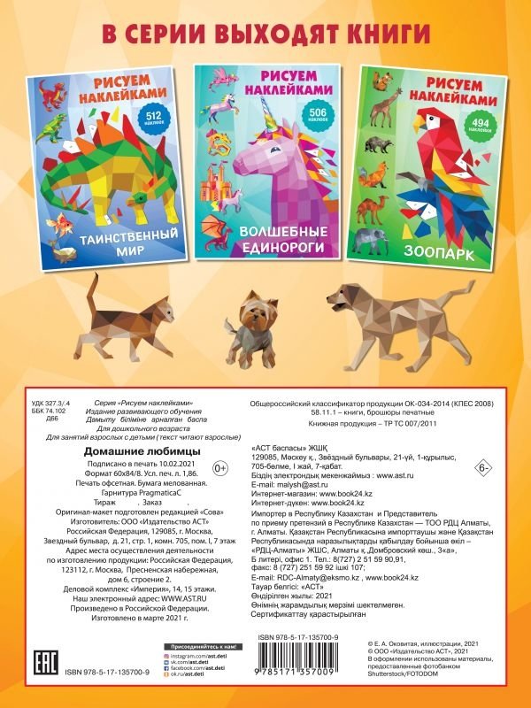 «Домашние любимцы» — самая настоящая волшебная книжка для юных художников. Это красочные иллюстрации + более 500 геометрических стикеров. Ребята узнают, что рисовать можно не только карандашами, фломастерами или красками, но и наклейками. Получаются картинки с 3D-эффектом! Достаточно подобрать наклейки по номерам. Ребёнок удивится и обрадуется, когда щенки и котята станут красочными и объёмными. Юным художникам обязательно понравятся интересные задания на развитие логики, памяти, внимания, мелкой моторики.