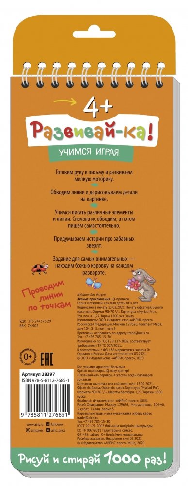 Яркая пропись-тренажёр для развития речи и подготовки руки к письму в игровой форме. По этому пособию легко развивать речь ребёнка — все картинки разбиты по временам года. Спросите, что можно делать весной, летом, осенью или зимой? Пофантазируйте и придумайте свои истории про зверят. Задания в прописях чередуются: сначала нужно обвести все линии на картинке, потом обвести и нарисовать самостоятельно разные линии и элементы на строчках. Учимся играя!