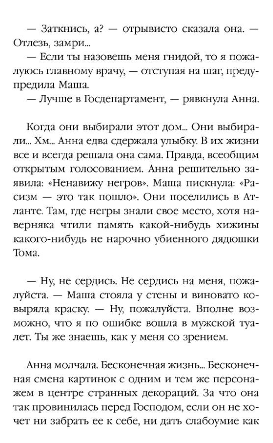 Жизнь - это когда строишь воздушные замки и плачешь, если они рушатся. А Она стала стильной и спокойной. Сначала она ждала момента, когда будет счастливой, как мама. "Что еще нужно - поле да сад, умного мужа, ласковый взгляд." Взгляд был. Но восторг по поводу "мне дали чудный рецепт дивного постного пирожка" все не приходил... Героини Елены Стяжкиной могут лгать, но только не себе. Каждая неистово ищет счастья, хотя на всех его не хватает.