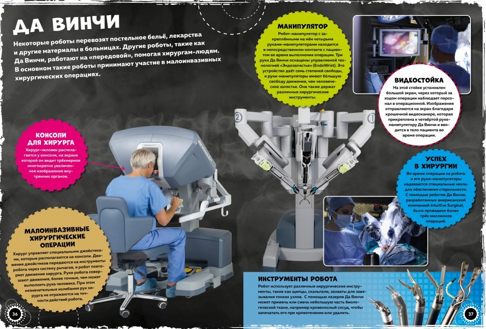 Вы узнаете все о первых роботах, а также о новейших проектах, разрабатываемых учеными по всему миру, и даже сможете собрать собственного робота. В разделе о суперкарах вас ждут самые известные, быстрые и дорогие автомобили в мире, их технические характеристики, а также интересная информация о типах двигателей, управляемости автомобиля, аэродинамике и многом другом. Посмотрите, как эти удивительные машины и устройства преображают нашу жизнь, делая ее не только удобнее, но и интереснее!