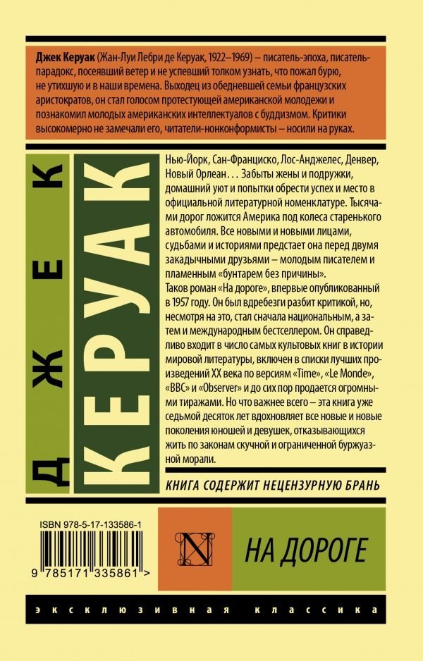 Таков роман «На дороге», впервые опубликованный в 1957 году. Он был вдребезги разбит критикой, но, несмотря на это, стал сначала национальным, а затем и международным бестселлером. Он справедливо входит в число самых культовых книг в истории мировой литературы, включен в списки лучших произведений ХХ века по версиям «Time», «Le Monde», «BBC» и «Observer» и до сих пор продается огромными тиражами. Но что важнее всего – эта книга уже седьмой десяток лет вдохновляет все новые и новые поколения юношей и девушек, отказывающихся жить по законам скучной и ограниченной буржуазной морали.