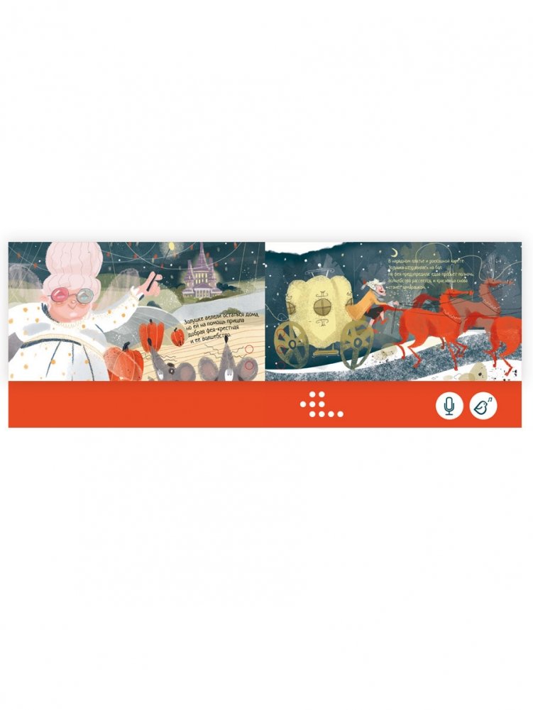 Книгадиктофон "Золушка" с яркими, современными иллюстрациями и звукозаписывающим модулем. Встроенный в книгу диктофон позволяет записать свой голос, читающий старую добрую сказку, чтобы ребенок в любой момент мог услышать историю, рассказанную родным голосом.