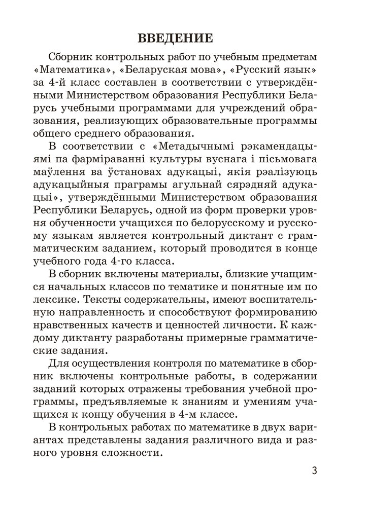 Сборник контрольных работ. 4 класс. Математика. Беларуская мова. Русский язык. ГРИФ