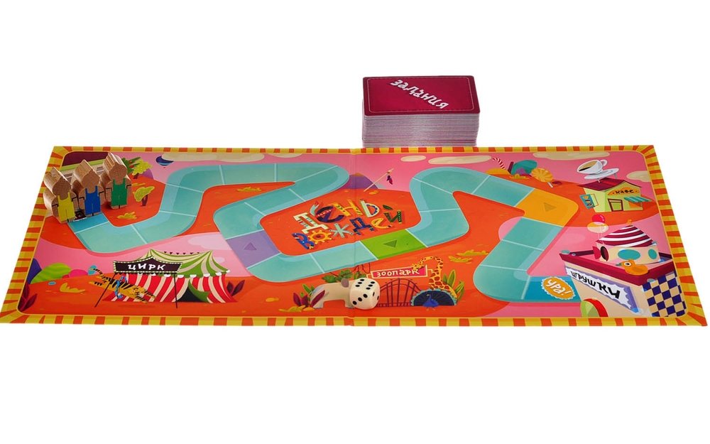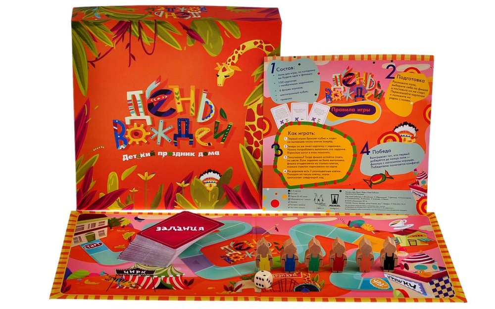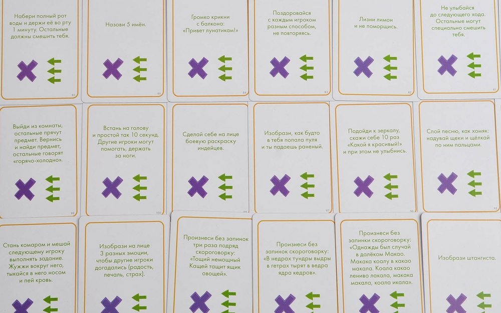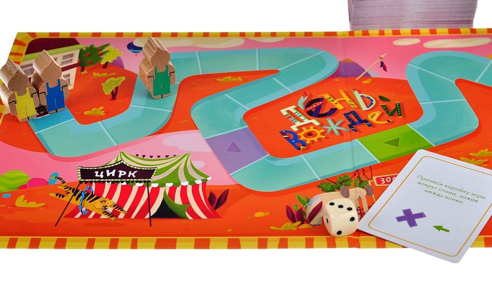 Детская активная игра для компании от 2 до 6 человек. Каждый ход игроки получают карточки с заданиями, которые надо выполнить. Если задание не выполнено, фишка игрока шагает назад по игровому полю. Цель игры — первым добраться до финиша.