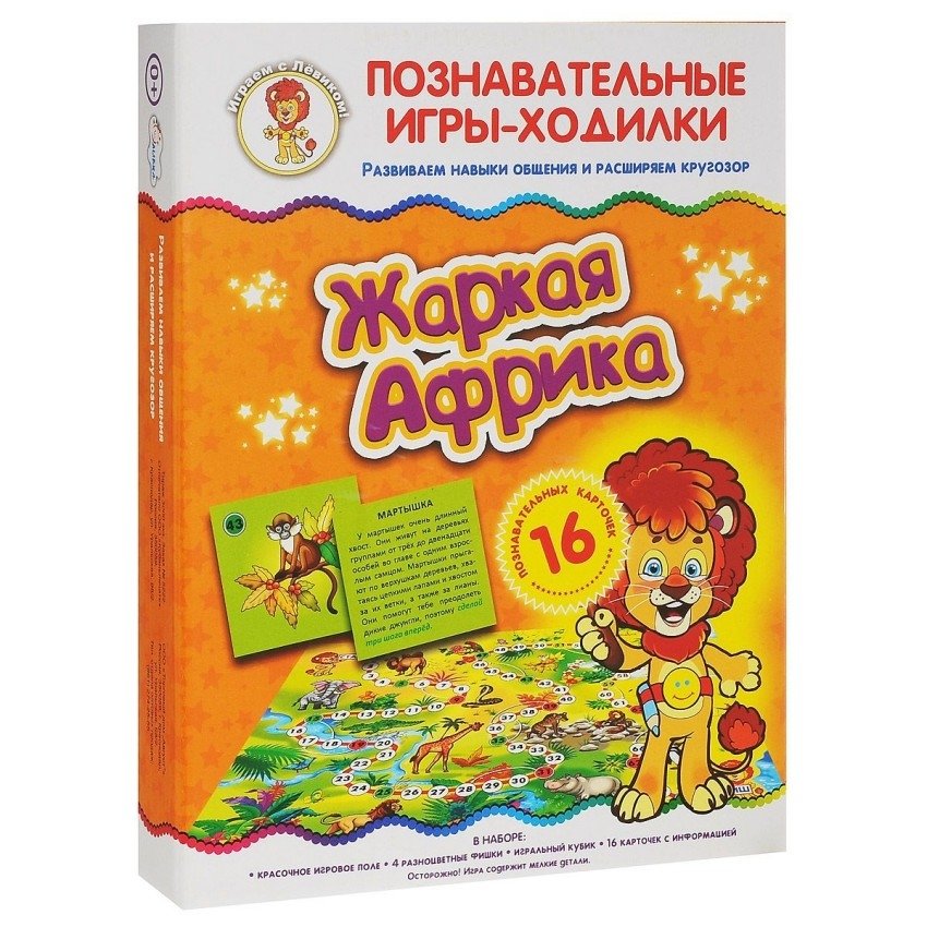 Благодаря настольной игре "Жаркая Африка", ваш ребенок знакомится с окружающим миром, формирует навыки общения со взрослыми и сверстниками, учится играть по правилам и расширяет кругозор.