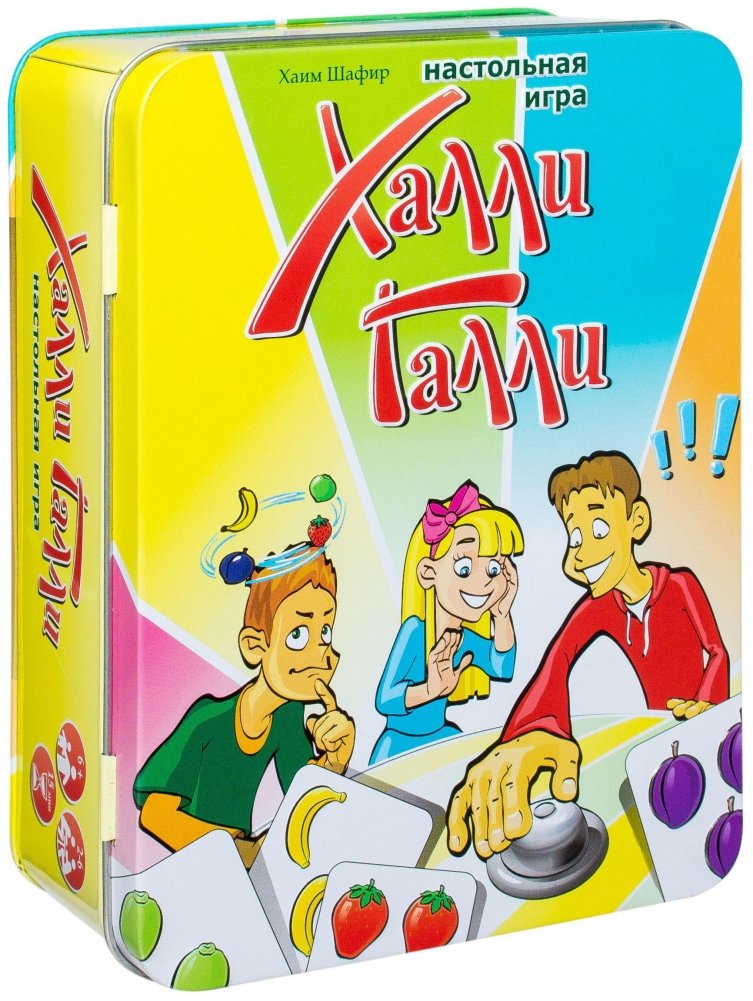 Что нужно, чтобы приготовить самый лучший фруктовый салат? Конечно же, настольная игра Халли Галли (Halli Galli)! Итак, у вас есть колода из 56 карт: на каждой карте изображен один вид фруктов (бананы, клубника, лаймы или сливы) в количестве от 1 до 5. Карты раздаются поровну между участниками, в центре стола ставится звонок. Игроки по очереди открывают карты, и как только на открытых картах всех игроков в сумме оказывается ровно 5 фруктов одного вида – надо звонить в звонок. Самый быстрый забирает все открытые карты себе, а побеждает тот, у кого в конце игры окажутся все карты! Игра отлично тренирует устный счет, внимательность, скорость реакции. Очень веселое и азартное соревнование для всех возрастов.