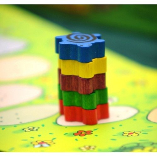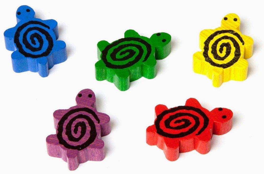 В свой ход вы можете сыграть одну карту с руки и выполнить предписанное ей действие. Двигать можно только черепаху того же цвета, что и сыгранная карта, даже если это не ваш цвет, а разыгрывать можно карты любой черепашки. Когда черепаха попадает на деление с другой черепахой, она залезает к ней на панцирь, таким образом, на делении может вырасти целая башня из черепах. Передвигаясь, черепаха везёт с собой всех соперниц, которые сидят у неё на спине.