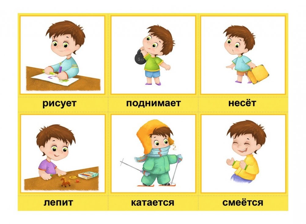 В наборе: 72 карточки: 36 с картинками и 36 с глаголами для занятий.