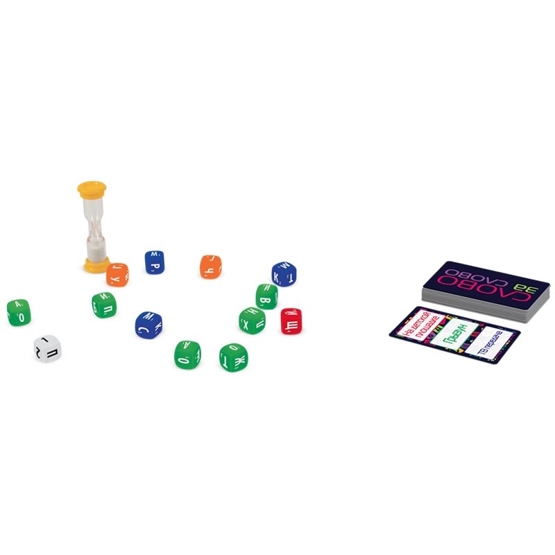 Состав игры: специальные кубики с буквами - 13 штук, песочные часы - 1 штука, карточки тем - 56 штук.