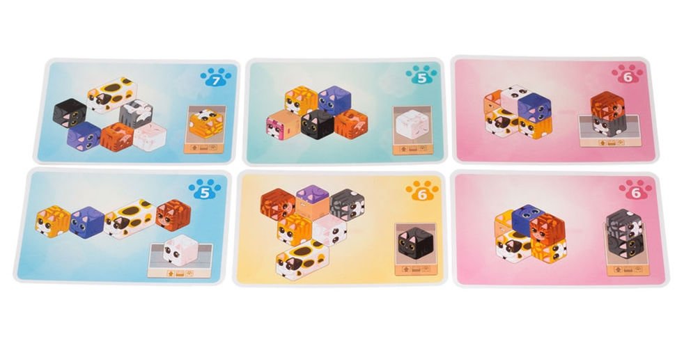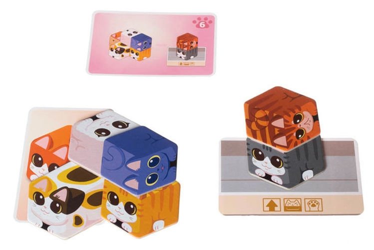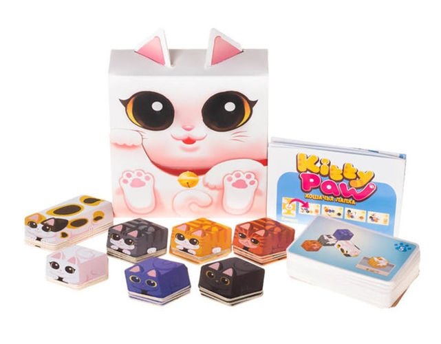 Котики всегда не прочь порезвиться и поиграть, так что выпустить их из коробки и устроить кошачий переполох – отличная идея! Готовы ловить хвостатых? Тогда вперед! Супердинамичное пушистое соревнование в ловкости и скорости реакции с друзьями и тремя десятками кубических котиков – это новая настольная игра для детей и взрослых "Кошачья лапка". Тайловые котики объединились в игривую стаю и вовсю резвятся на столе! Ловкость, сообразительность и внимательность – эти качества помогут безошибочно отловить нужных котиков и расположить их в правильном порядке быстрее соперников. Флажок: Целая коробка гипоаллергенных кубических котиков! Лапы вверх, или играть буду!