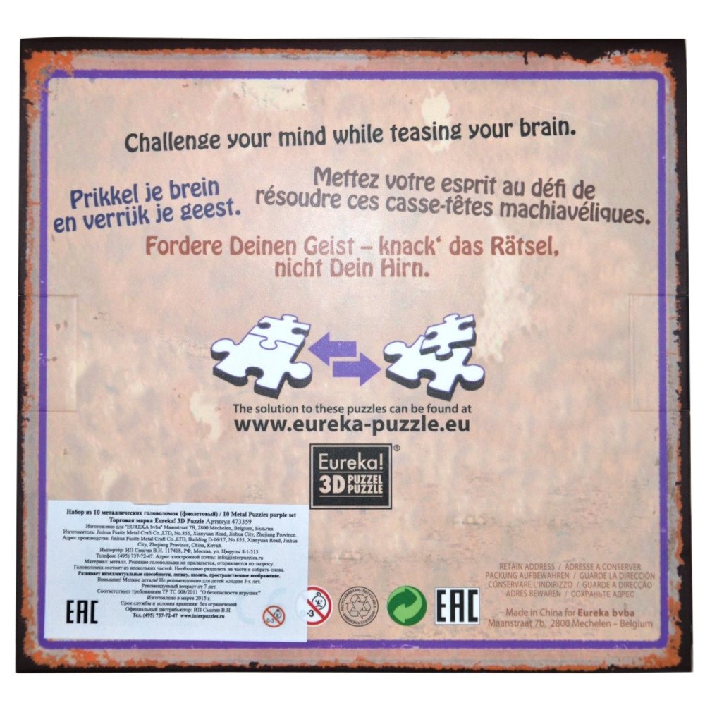 Набор металлических головоломок "Eureka! 3D Puzzle", 10 штук, фиолетовый