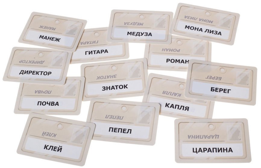 Состав игры: 200 карточек с 400 словами, 100 двусторонних карточек, 15 карточек агентов, 1 карточка убийцы, 11 жетонов времени, 1 блокнот с картами миссий, 1 подставка под карточки.