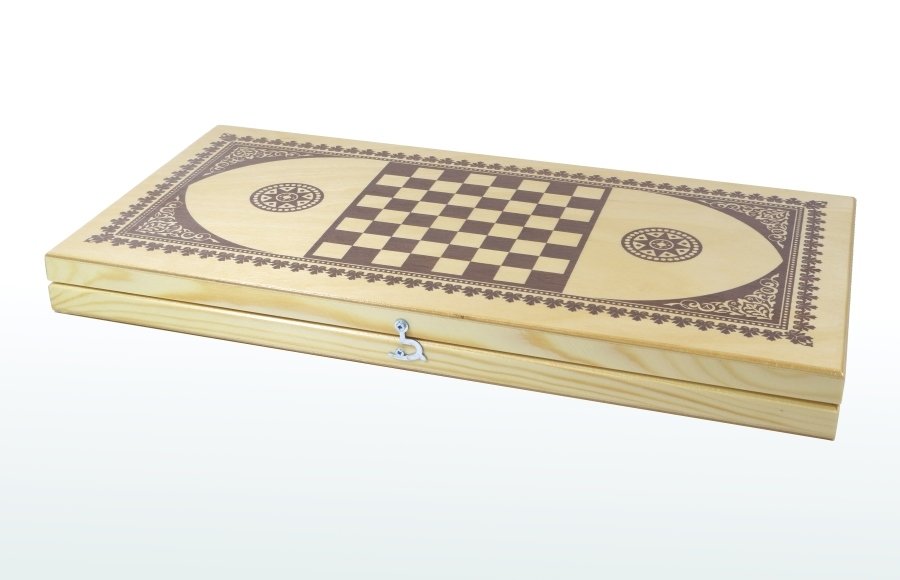В комплект входят: двустороннее, украшенное орнаментом, складное поле из дерева лиственных пород (в разложенном состоянии – 41х39 см, в сложенном 20х39 см), фишки деревянные двух цветов (диаметром -2 см, высотой – 1 см) - 30 штук. (цвет фишек может отличаться от изображенного на упаковке), кубики игральные - 2 штуки, правила игры в нарды (длинные и короткие).
