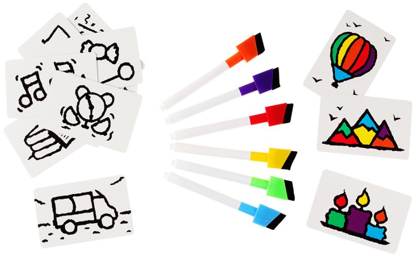 - 6 запасных маркеров со стирающими колпачками.