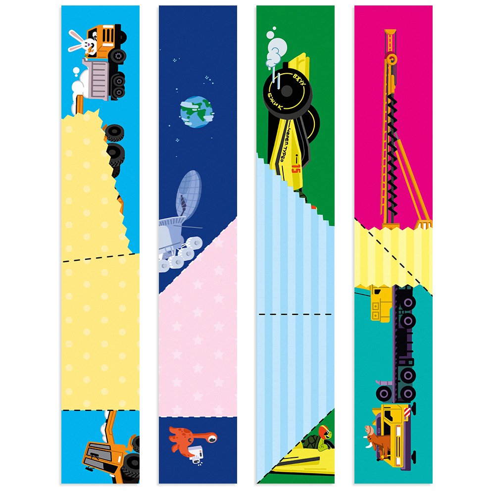«Сгибалки» для детей 4-5 лет (до двух сгибов) формируют понимание отношений между предметами путём наложения, совмещения, перегруппировки «кусочков» картинки.