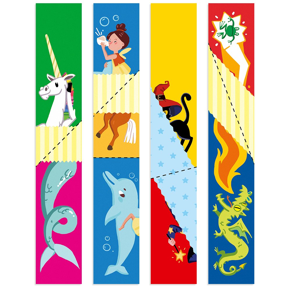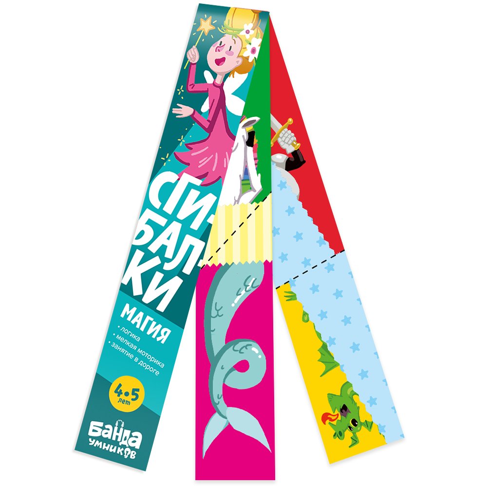 В ней каждый лист нужно согнуть до двух раз, чтобы собрать картинки. У ребёнка формируется понимание отношений между предметами путём наложения, совмещения, перегруппировки "кусочков" картинки, на которой изображены волшебные персонажи.