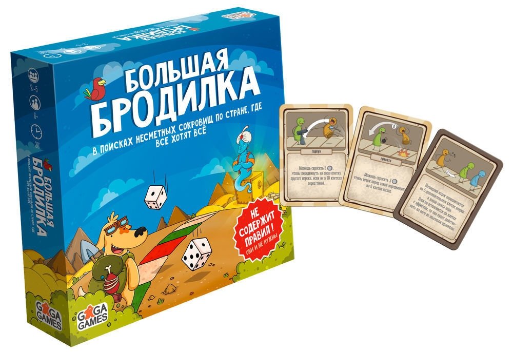 В пути подстерегают как опасности и ловушки, так и необычайное везение. Коварные порталы, которые могут сэкономить время или отправить на полкарты назад. Проклятая шахта, которая может надолго задержать или подать победу на блюдечке. Карты Тадам, меняющие правила игры буквально на ходу. Играть одинаково весело и в компании побольше, и даже вдвоем. А крутая мультяшная рисовка Бродилки — дело рук петербургского художника-комиксиста Владимира Лопатина. Веселые иллюстрации, полное отсутствие правил и азартная механика превращают Большую Бродилку в любимицу всех возрастов и поколений. Отличная игра, которая подойдет как для уютного семейного вечера, так и для веселой компании друзей.