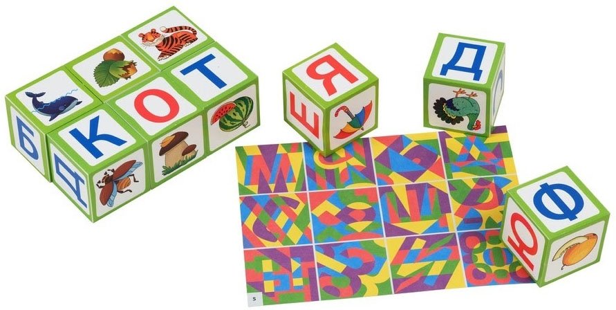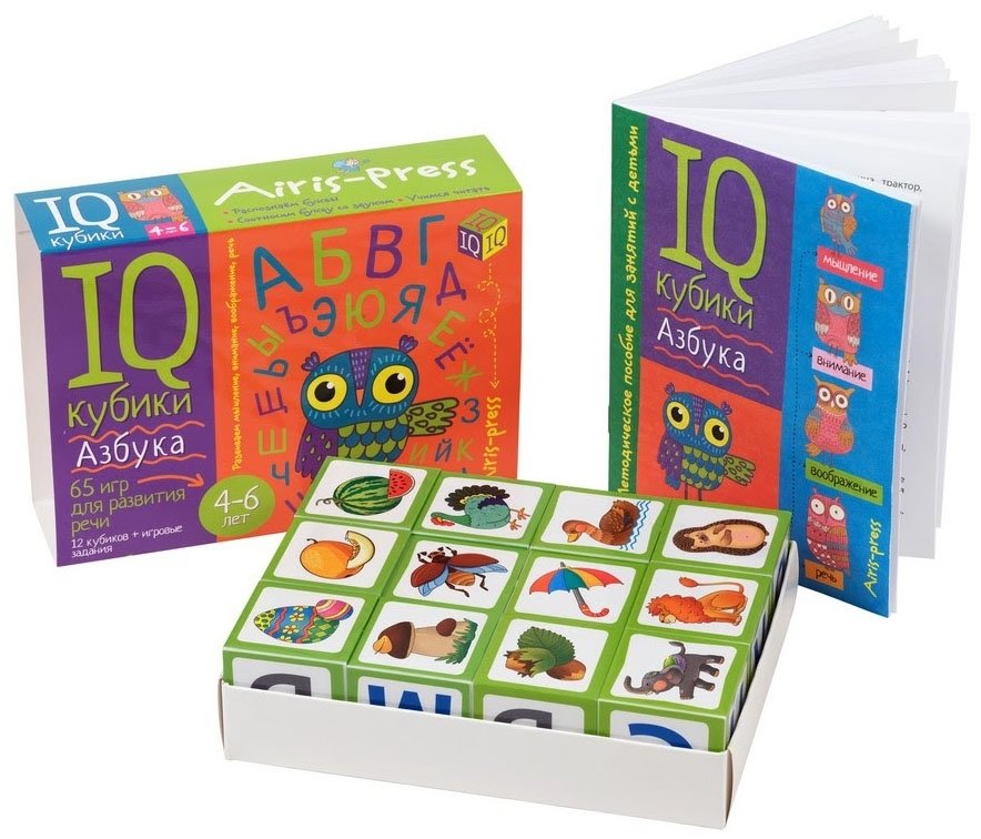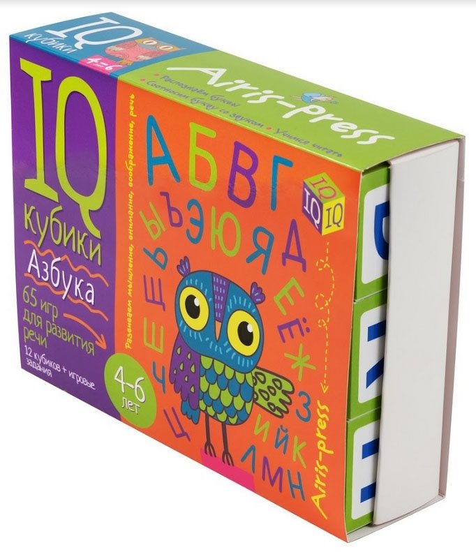 IQ-кубики «Азбука» — это универсальный набор для развития дошкольника. Игровой комплект включает: 12 кубиков с буквами и картинками, набор игровых карточек, методическое пособие с подробным описанием 65 развивающих игр. Ребёнок научится распознавать буквы, соотносить букву со звуком, читать слоги, читать простые слова, составлять слова из кубиков.