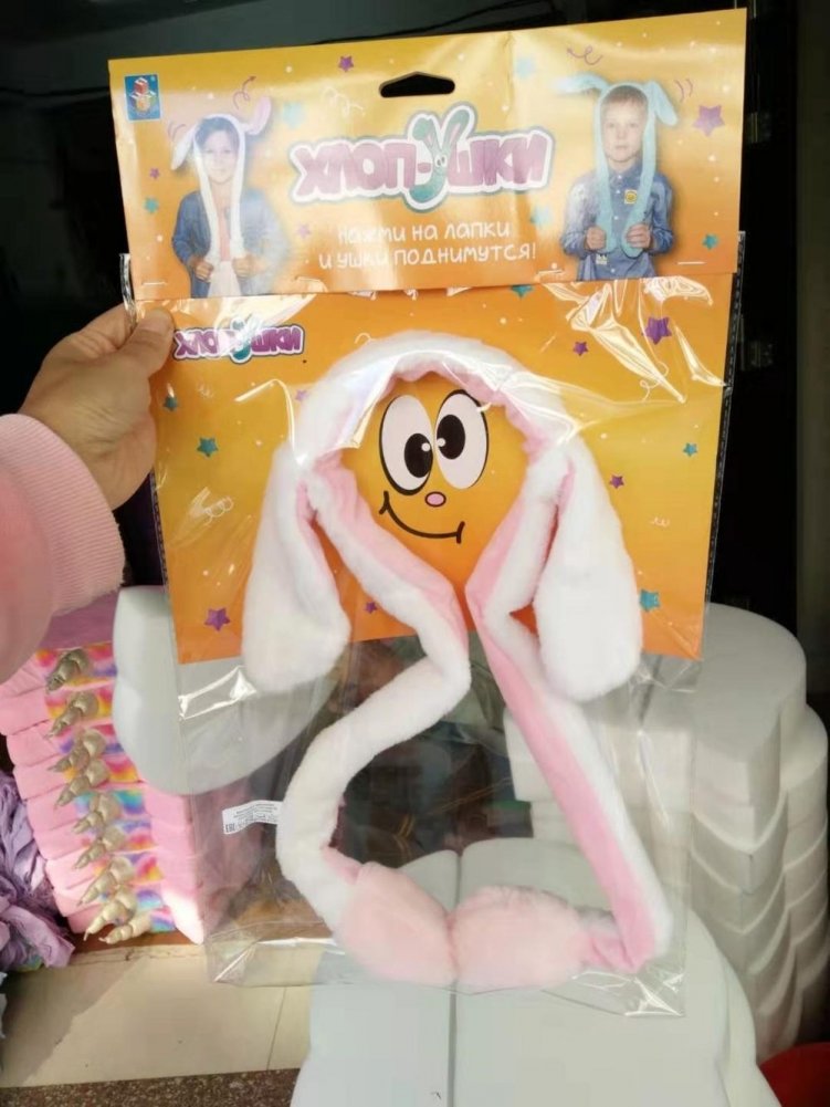 Ободок детский с двигающимися ушками. В длинные лапки встроен несложный механизм подъема.