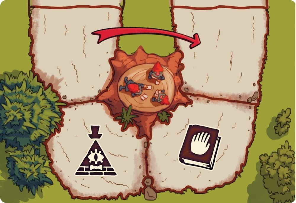 Разложив вокруг игрового поля карты дороги, помощи и пакостей, карту и фишку Пухли, а также карту Хижины Чудес, участники выбирают себе героев и готовы отправиться на поиски беглеца.