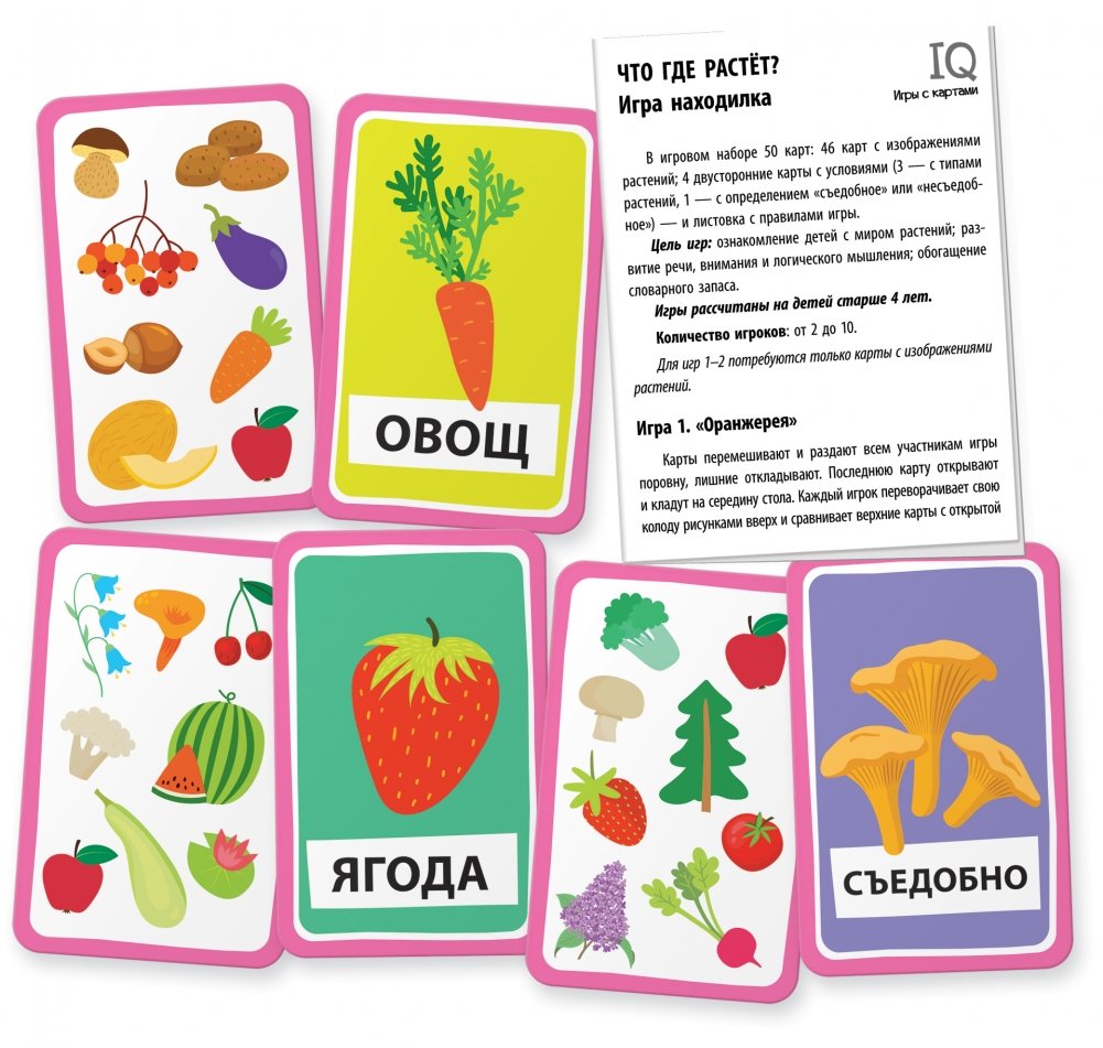Изучаем овощи и фрукты, ягоды и грибы, деревья и цветы, развиваем внимание, логическое мышление и речь, обогащаем словарный запас.