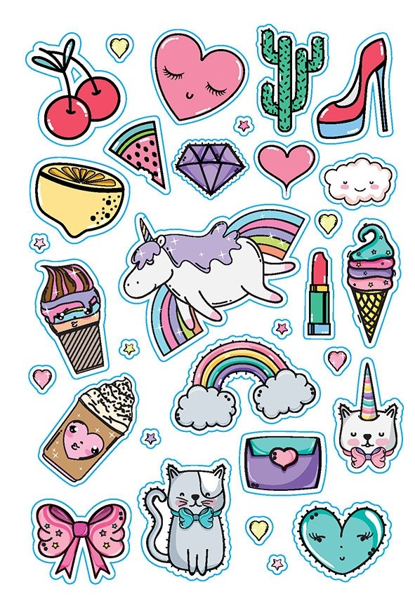 Милые котики, радужные единороги, аппетитные сладости и другие трендовые изображения украсят ваш Bullet Journal или любой другой ежедневник, создавая лёгкое настроение и помогая лучше ориентироваться в записях.