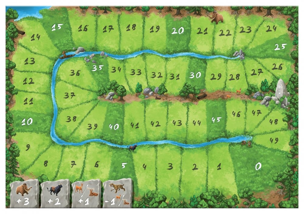 В настольной игре "Каркассон. Охотники и собиратели" игроки по очереди составляют карту первобытной местности с помощью специальных плиток – тайлов. На каждой плитке могут быть расположены различные объекты: реки, озёра, леса, менгиры – и животные, которые там водятся. В "Охотниках и собирателях" встречаются красные олени, туры, мамонты и опасные хищники – саблезубые тигры, которые конкурируют за добычу с вашими охотниками. Каждый раз после того, как вы достраиваете карту, вы можете разместить на новом тайле своего соплеменника или хижину. Поставленный на реку соплеменник становится рыболовом, а если положить его плашмя в свободную низину с животными, то он превратится в охотника. Чтобы привести своё племя к процветанию и победить, вам придётся мыслить стратегически и занимать самые выгодные территории.