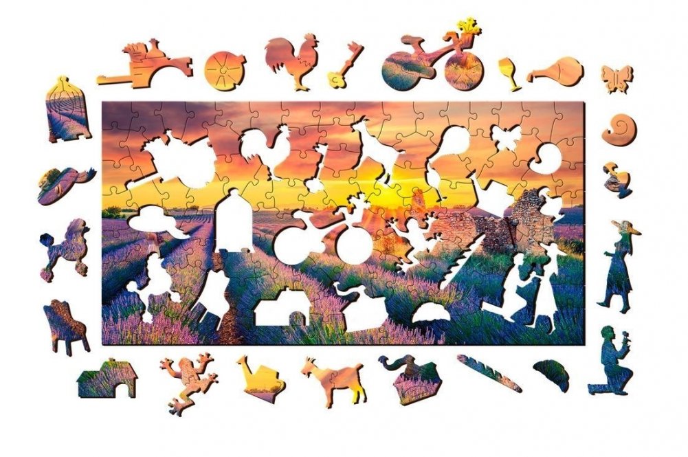 Фигурные пазлы - это пазлы с деталями причудливой формы. При этом часть элементов выполнены в форме предметов, относящихся к теме основной картинки. В данном случае, это предметы и памятники, ассоциирующиеся с Провансом. Детали пазла выполнены из фанеры. Изображение с помощью специального принтера нанесено прямо на дерево (самый прочный вариант). Такие необычные пазлы понравятся и детям и взрослым. Даже те, кто не любят собирать классические пазлы, будут с интересом рассматривать и стыковать фигурные детали.