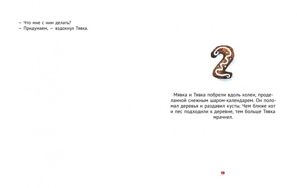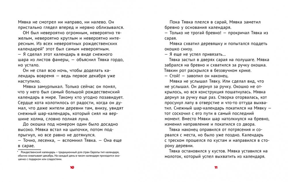 Мявке не терпится заглянуть в невероятный рождественский календарь, который сделал для него Тявка. Это огромный фанерный шар с подарками внутри. Вот только Тявка еще не успел как следует закрепить календарь. Одно неловкое Мявкино движение — и в опасности вся деревня.