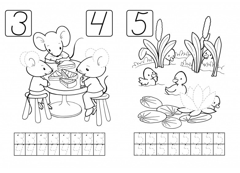ы хотите научить малыша писать цифры? Наши прописи помогут вам в этом. Пусть малыш сначала потренирует руку, раскрашивая картинку, а потом попробует выводить красивые ровные цифры в клеточках. Кроме того, считая количество предметов на картинках, вы сможете закрепить у малыша навыки счёта.