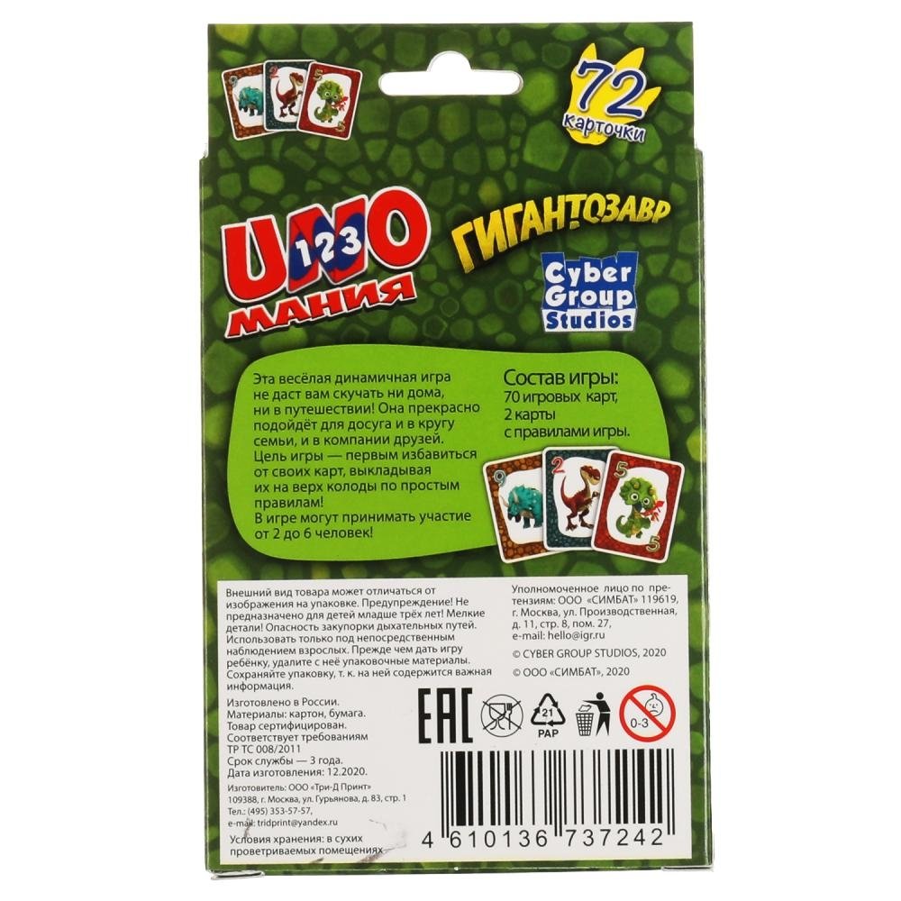 Карточная игра "УНОмания. Гигантозавр" (72 карточки)
