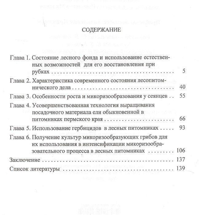 Монография содержит результаты многолетних исследований вопросов лесовосстановления таежных лесов Прикамья. Рассмотрены вопросы состояния лесного фонда, естественного возобновления хозяйственно-ценными хвойными, роста лесных культур ели, состояния лесных питомников, возможностей применения новых технологий выращивания крупномерного посадочного материала без перешколивания, применения микоризации при выращивании посадочного материала и гербицидов для борьбы с сорняками. Приведены сведения о возможностях применения тех или иных технологий при создании лесных культур и выращивании посадочного материала в лесных питомниках.