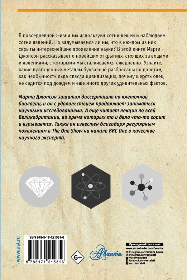 Почему лед скользкий? Может ли паук поймать самого себя? Какой клей заставляет яблоки хрустеть? Марти Джопсон, научный эксперт и популяризатор науки, размышляет о множестве удивительных вещей и явлений, с которыми мы сталкиваемся каждый день, причем в своих рассуждениях он опирается на результаты новейших исследований. Почему от лука текут слезы, можно ли вспомнить сон, а как отрастить конечность? В этой книге тебя ждут ответы на эти и многие другие, порой даже самые неожиданные вопросы.