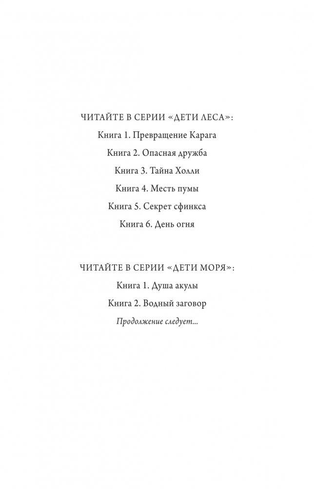 Тьяго и подумать не мог, что однажды ему придётся выступить против банды преступников и примерить на себя роль детектива! Но после того, как он с друзьями столкнулся со злоумышленниками, которые пытались отравить воду и навредить животным Эверглейдса, мальчик-акула понял: только они могут остановить злодеев! Правда, для этого им придётся найти ответы на море вопросов. Кто стоит во главе банды? Как со всем этим связана мать их одноклассницы Эллы? А главное – как предотвратить новые преступления? Тьяго ждёт опасное приключение! К счастью, ему на помощь уже спешат другие оборотни-подростки: мальчик-пума Караг, девочка-волчица и одна красная белка…
