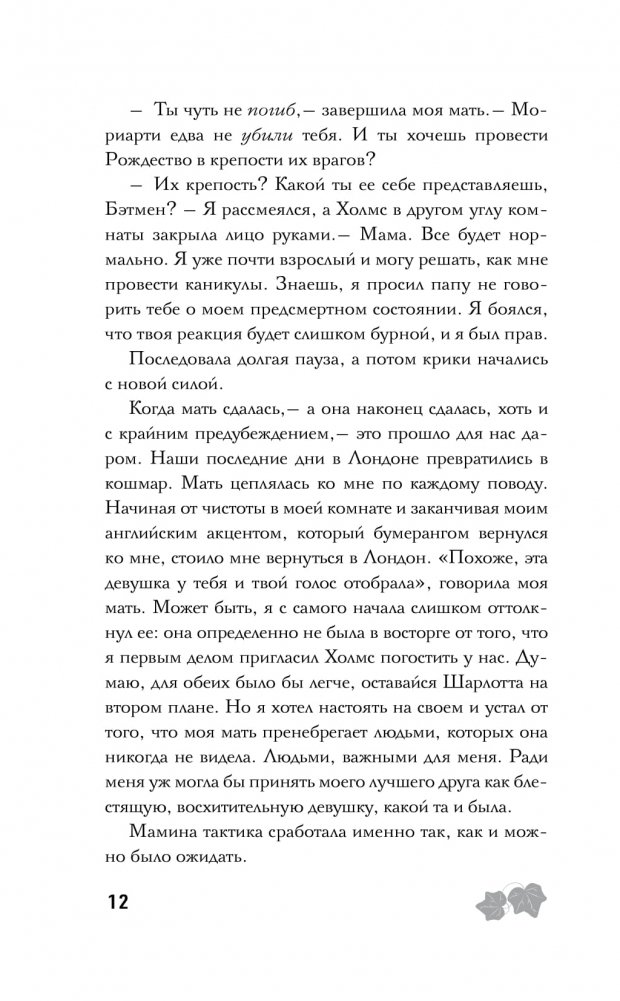 После первого успешного расследования Джейми и Шарлотта отправляются на зимние каникулы в родовое поместье Холмсов. Мрачный готический особняк навевает на Джейми тоску — тем более, характер у Холмсов старших еще тяжелее, чем у их дочери. Единственное светлое пятно в этом ледяном царстве дедукции — любимый дядя Шарлотты, шутник и добряк Леандр. Который внезапно исчезает при очень странных обстоятельствах.