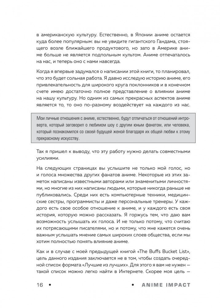 "Anime World" о том, что делает аниме не просто развлечением, а настоящим искусством с миллионами последователей по всему миру. Если кто-то из ваших друзей все еще считает аниме "просто детскими мультиками", дайте ему почитать эту книгу.