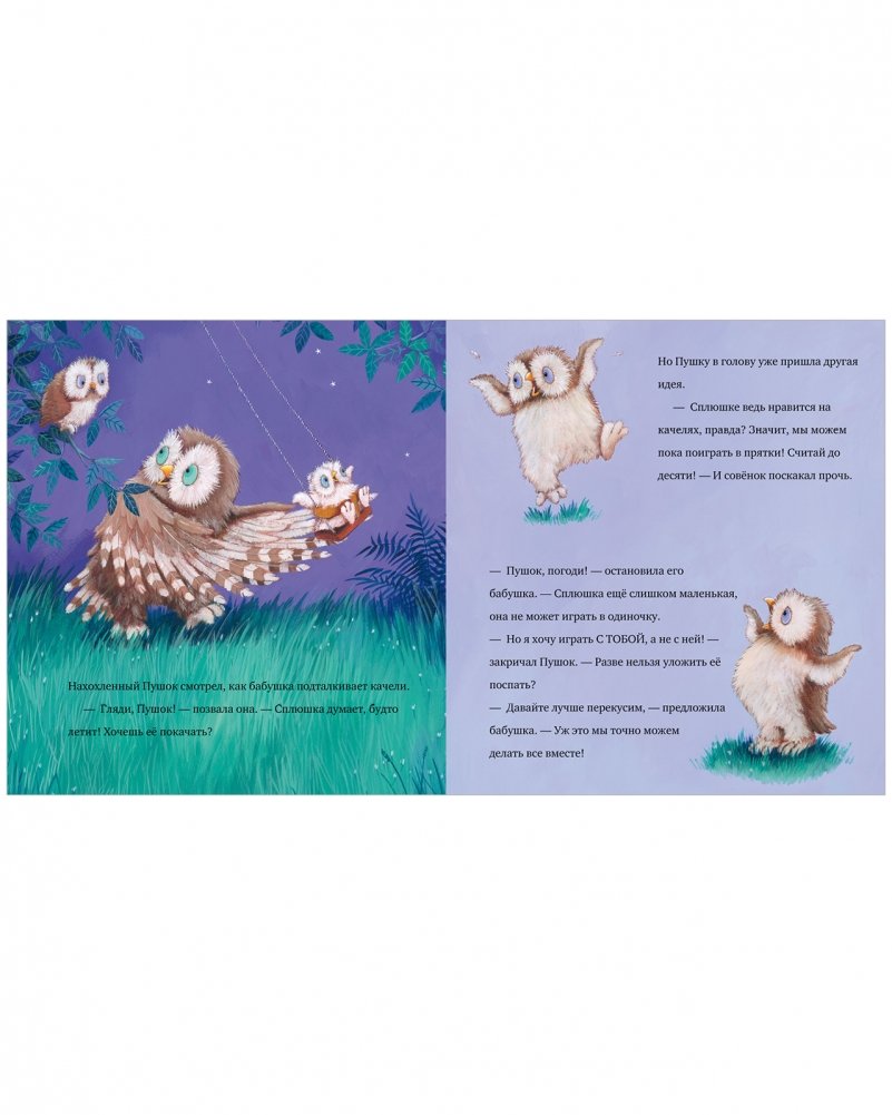 Книга «Любви хватит на двоих» расскажет о том, что приходится переживать детям, когда в их семье появляется кто-то младший. Так случилось с совенком Пушком: однажды бабушка представила ему двоюродную сестренку, маленькую Сплюшку.