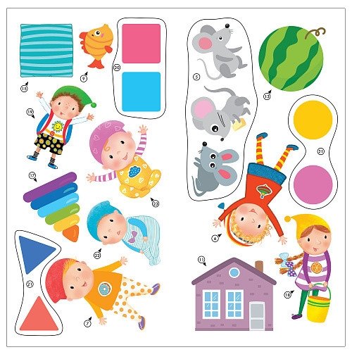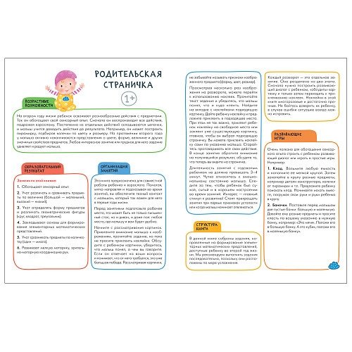 Книга «Счет, форма, величина 0+» из серии «Школа Семи Гномов. Активити с наклейками» предназначена для формирования и развития у детей от 1 года до 2 лет элементарных математических представлений, способности сопоставлять величину предметов, определять их форму.