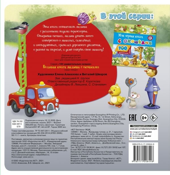 Открывая окошки, малыш узнает много интересного о машинах, самолетах и инструментах, правилах дорожного движения, работе на стройке, и даже соберет свою машину!