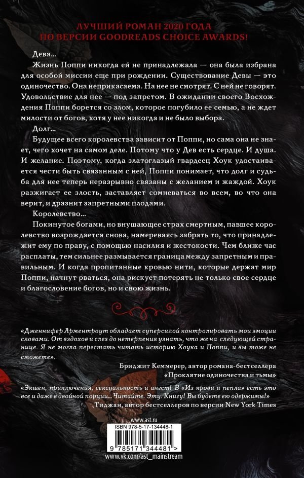 Жизнь Поппи никогда ей не принадлежала — она была избрана для особой миссии еще при рождении. Существование Девы — это одиночество. Она неприкасаема. На нее не смотрят. С ней не говорят. Удовольствие для нее — под запретом. В ожидании своего Восхождения Поппи борется со злом, которое погубило ее семью, а не ждет милости от богов, хотя у нее никогда и не было выбора.
