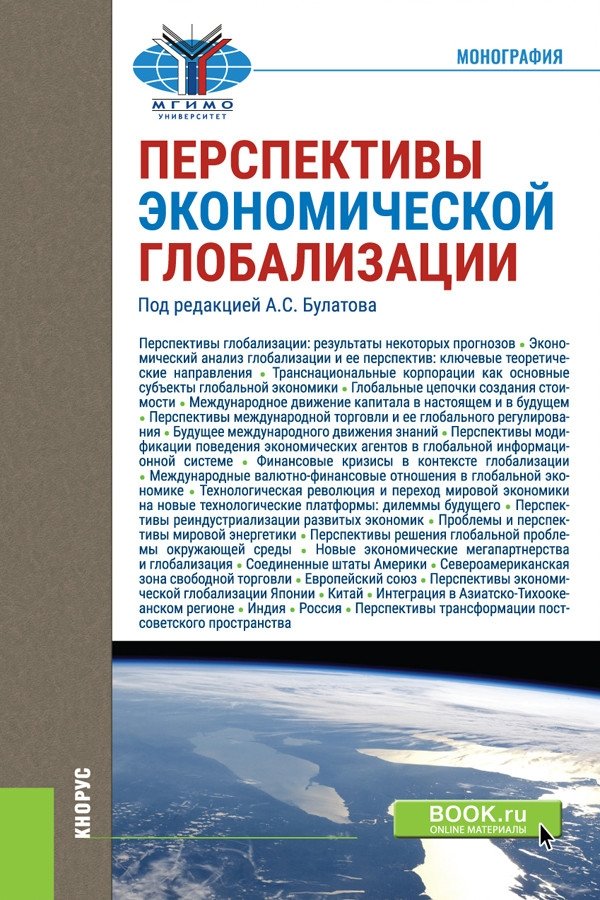 Является коллективным трудом большой группы российских экономистов-международников. Опираясь на зарубежные и отечественные исследования, они излагают свой взгляд на процессы экономической глобализации в настоящем и?будущем. В первой части монографии анализируются нынешние и будущие тенденции, вызовы и проблемы для глобальной экономики в целом. Во второй части исследуются перспективы глобализации ведущих экономик и интеграционных объединений мира.