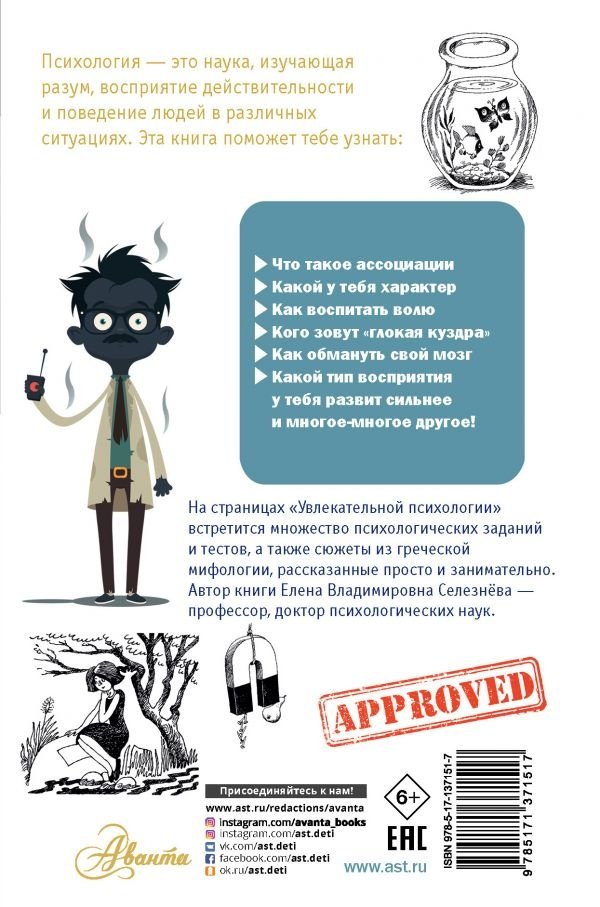 Книга Елены Владимировны Селезневой "Увлекательная психология" расскажет читателям, как развить внимание, силу воли и крепкую память, можно ли слышать цвета и видеть музыку, для чего нужны эмоции, кто такие холерики и флегматики, как поднять настроение, когда грустно... Занимательные истории по случаю, сюжеты из греческой мифологии, задания и тесты сделают чтение по-настоящему занимательным и помогут лучше понять себя и своих близких. Для среднего школьного возраста. Елена Владимировна Селезнева - профессор, доктор психологических наук.
