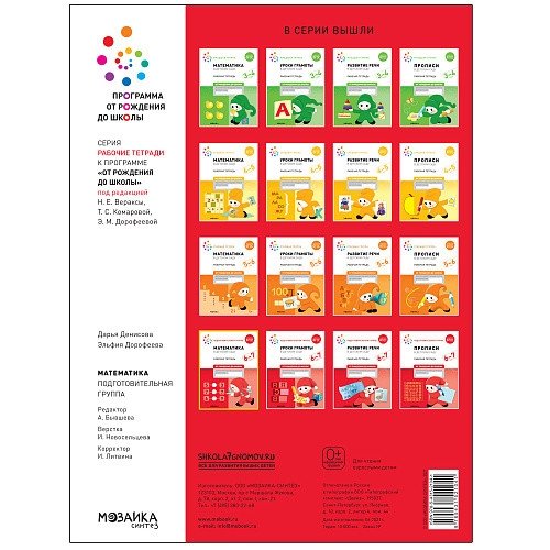 Серия «Рабочие тетради» издана в рамках учебно-методического комплекта к программе «ОТ РОЖДЕНИЯ ДО ШКОЛЫ».