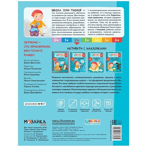 Книга «Окружающий мир 2+» из серии «Школа Семи Гномов. Активити с наклейками» предназначена для расширения кругозора и знаний об окружающем мире детей от 2 до 3 лет.