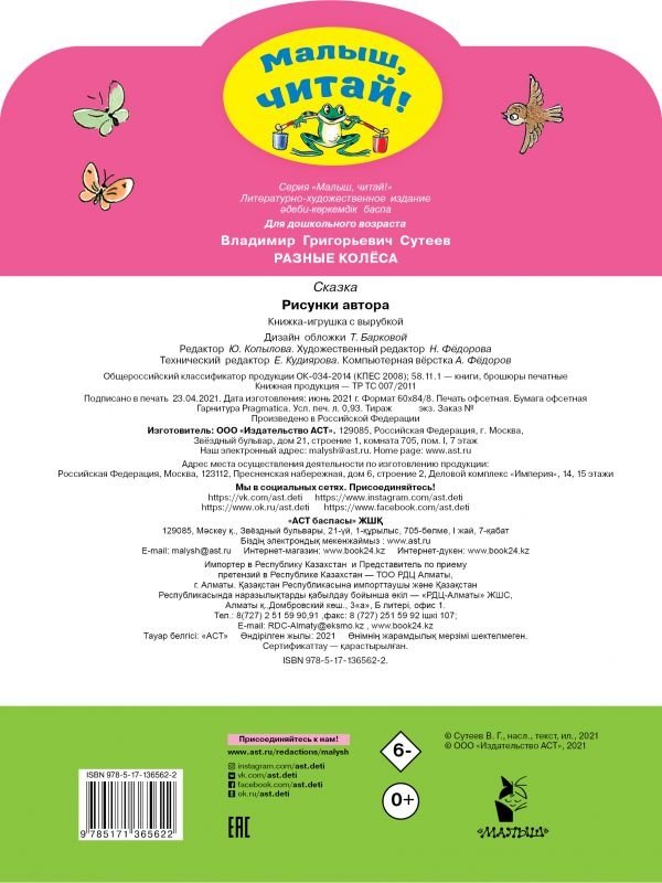 С книгой В. Сутеева "Разные колёса" серии "Малыш, читай!" знакомство с коротеньким произведением станет первым самостоятельным шагом в чтении, а поможет малышу в этом специально подобранный крупный шрифт.