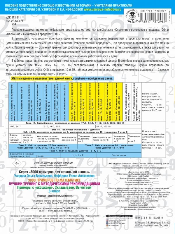 Пособие содержит примеры по базовым темам курса математики для 3 класса «Сложение и вычитание в пределах 100» и «Сложение и вычитание в пределах 1000».