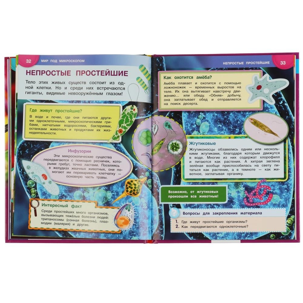 Эта занимательная энциклопедия погрузит юного читателя в удивительный мир, познакомиться с которым можно только под многократным увеличением в микроскопе. Яркие фотографии и удивительные факты увлекут ребёнка и помогут ему быстро, эффективно и с удовольствием усвоить новую информацию.