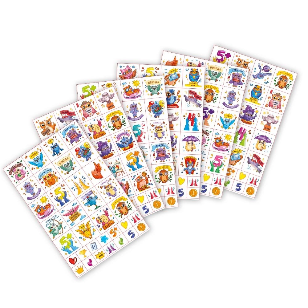 Чтобы учиться с удовольствием и получать радость, маленьким ученикам нужны победы и признание. Положительные оценки самых первых заданий, выполненных дошкольниками и младшими школьниками – залог их будущих успехов. Мотивировать ребенка в учебной, спортивной или творческой деятельности поможет набор красочных наклеек с забавными совами. Порадуйте юных учеников за правильно решенную задачу или аккуратно выполненное упражнение необычными наклейками с похвалой от совушек и маленькими поощрительными наклейками – сердечками, оценками, медалями и аплодисментами.